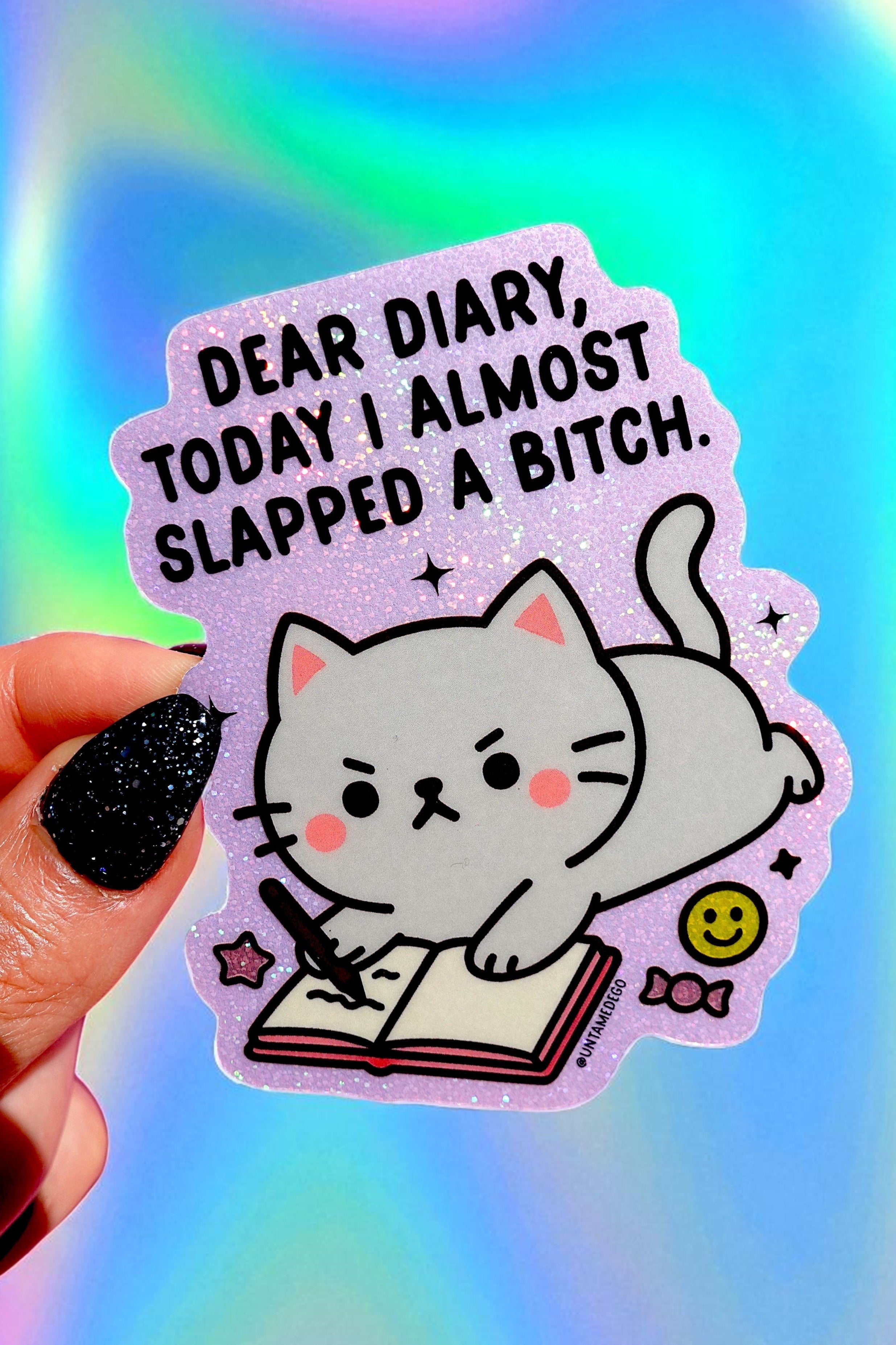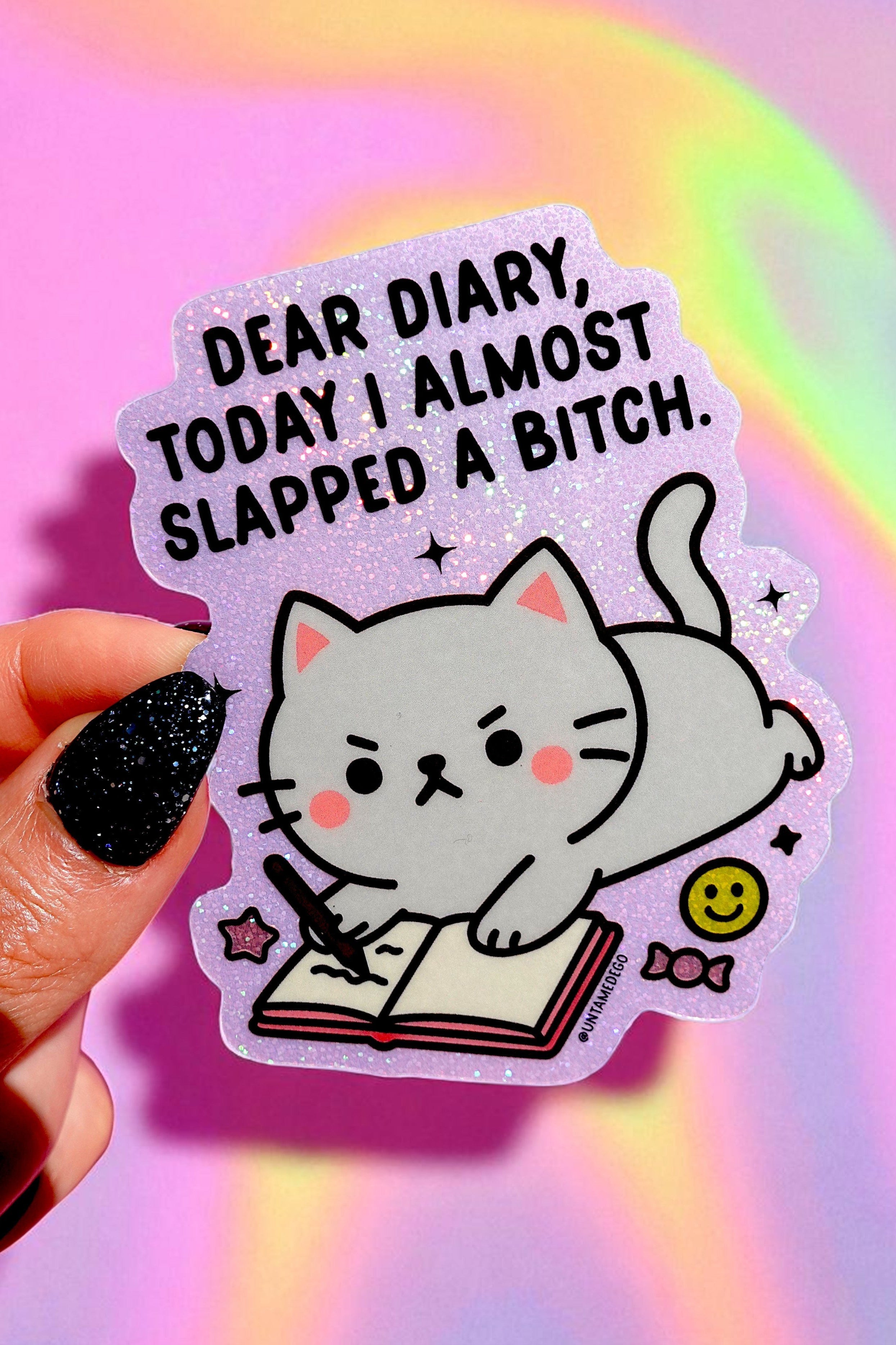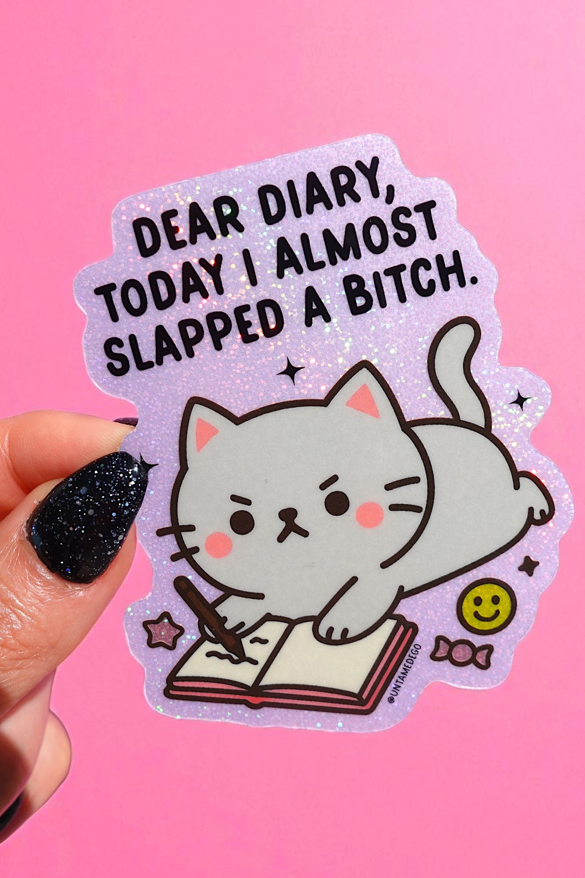 The perfect work sticker that's a little sassy but not pushing the limit, lol. Good quality sticker and I love the sparkle.