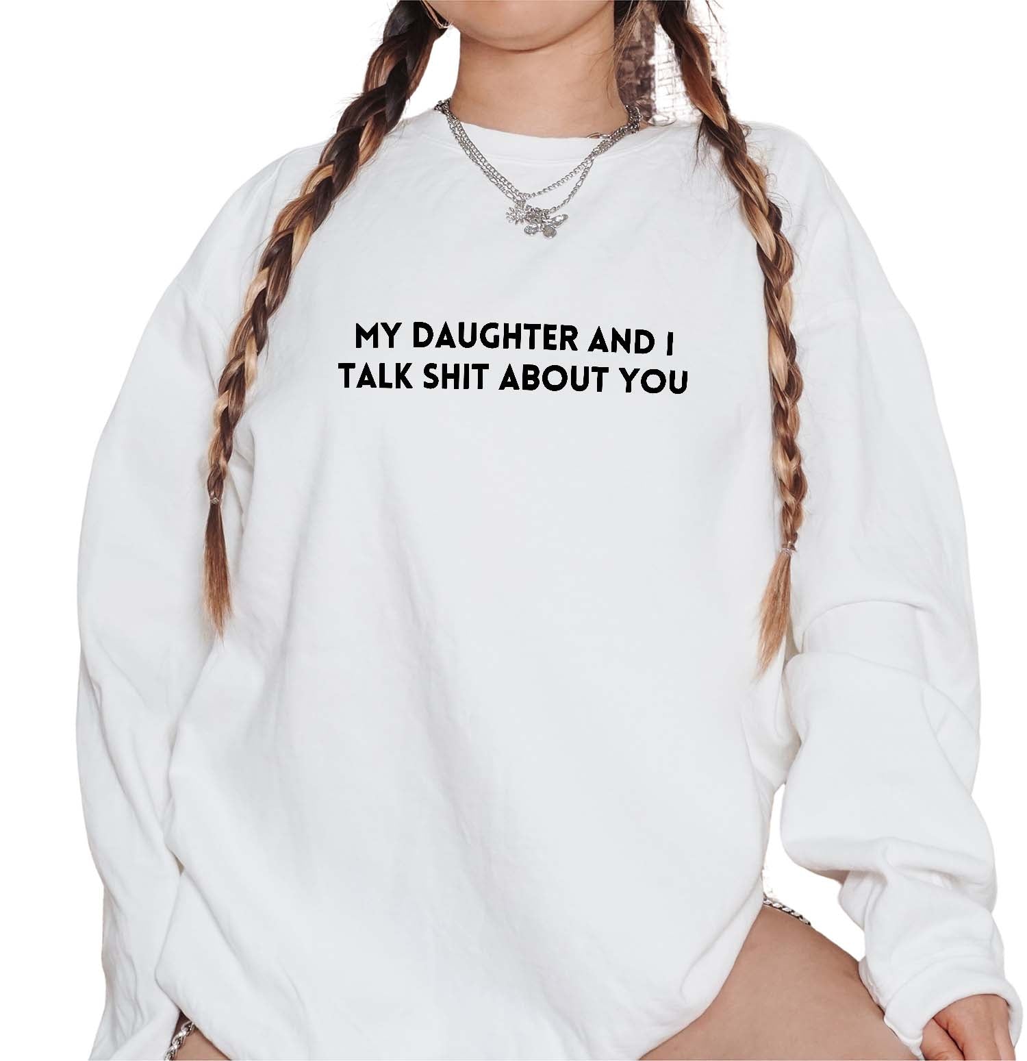 My Daughter And I Talk Shit About You Embroidered Soft Crew Sweatshirt