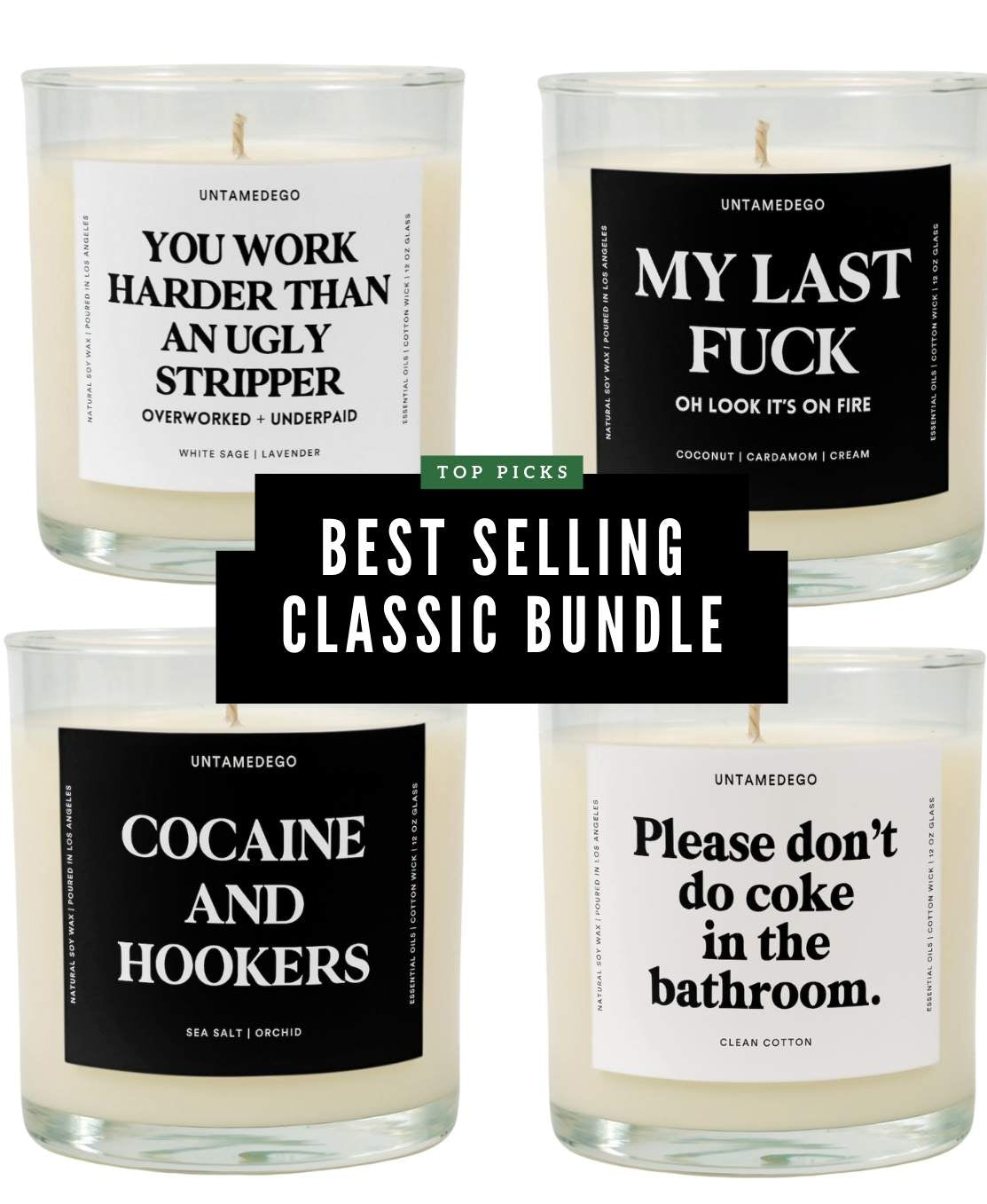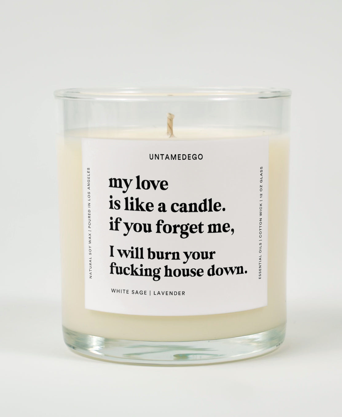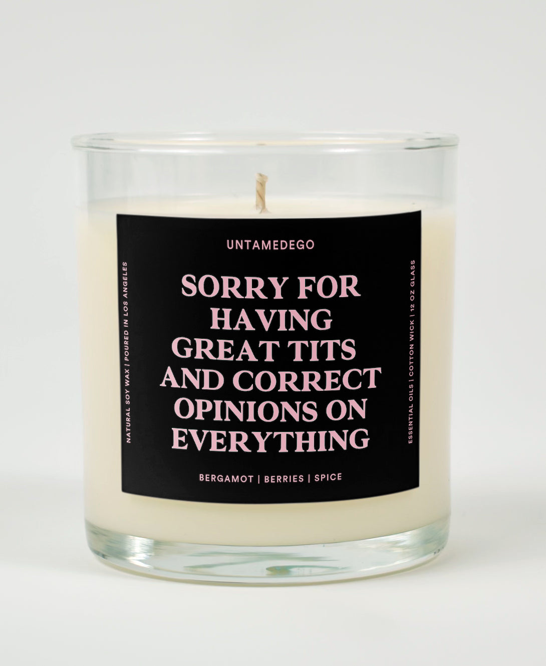 We don't fuck around when it comes to making candles. You see, here at Untamedego, we know a little something about soy wax. So yeah...fuck you, other candle companies. We also hand-pour each one of our natural soy-based candles in a small batch here in Los Angeles, California, which means they burn clean and smell amazing.