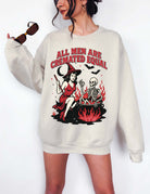 Unleash your dark side with this cult-ready crew neck sweatshirt. Featuring a retro witch & skeleton cauldron graphic and bold “All Men Are Cremated Equal” headline, it’s the perfect blend of spooky flair and streetwear edge. Available in Black Bone or White, it layers effortlessly under a leather jacket or stands on its own for chilly bonfire nights, Halloween parties, or everyday mischief.