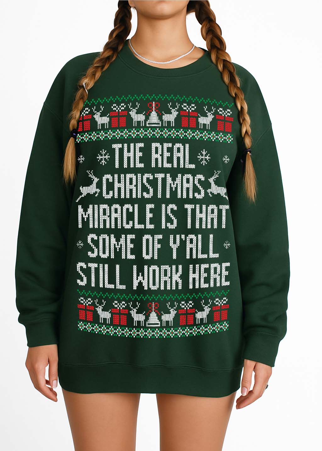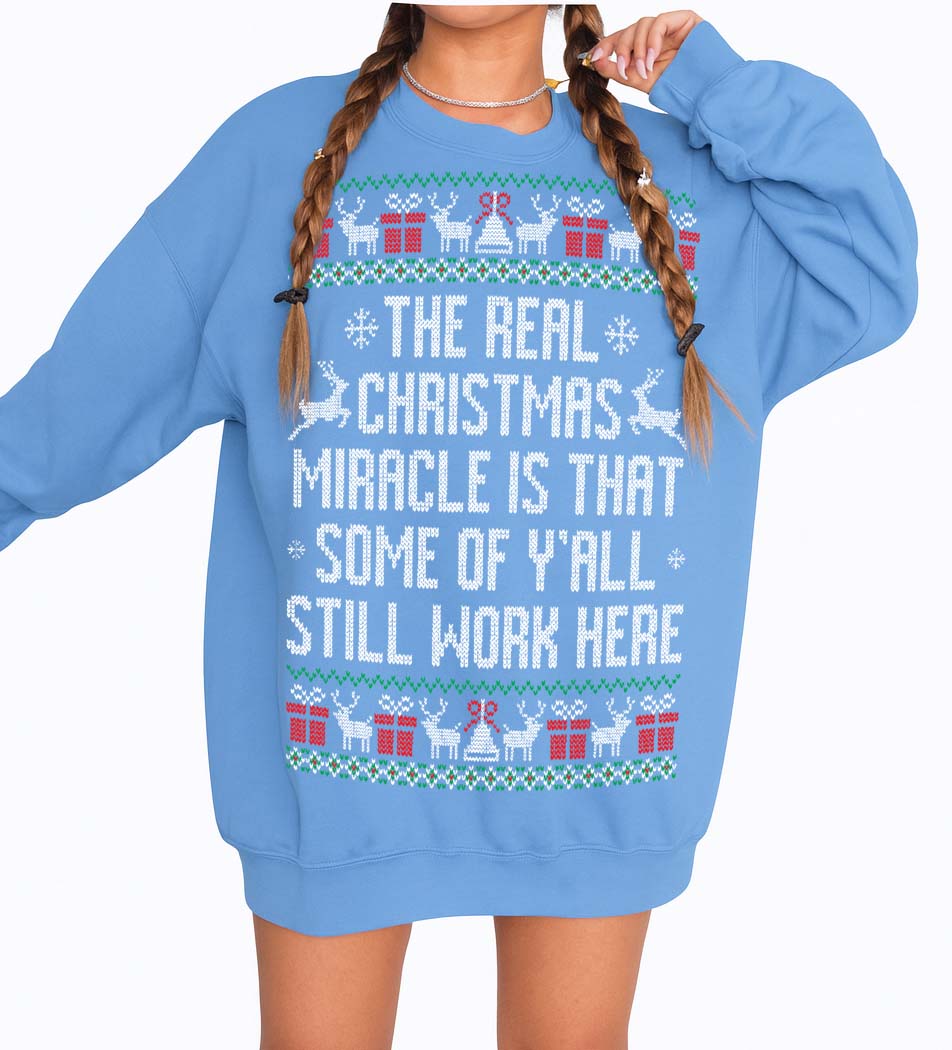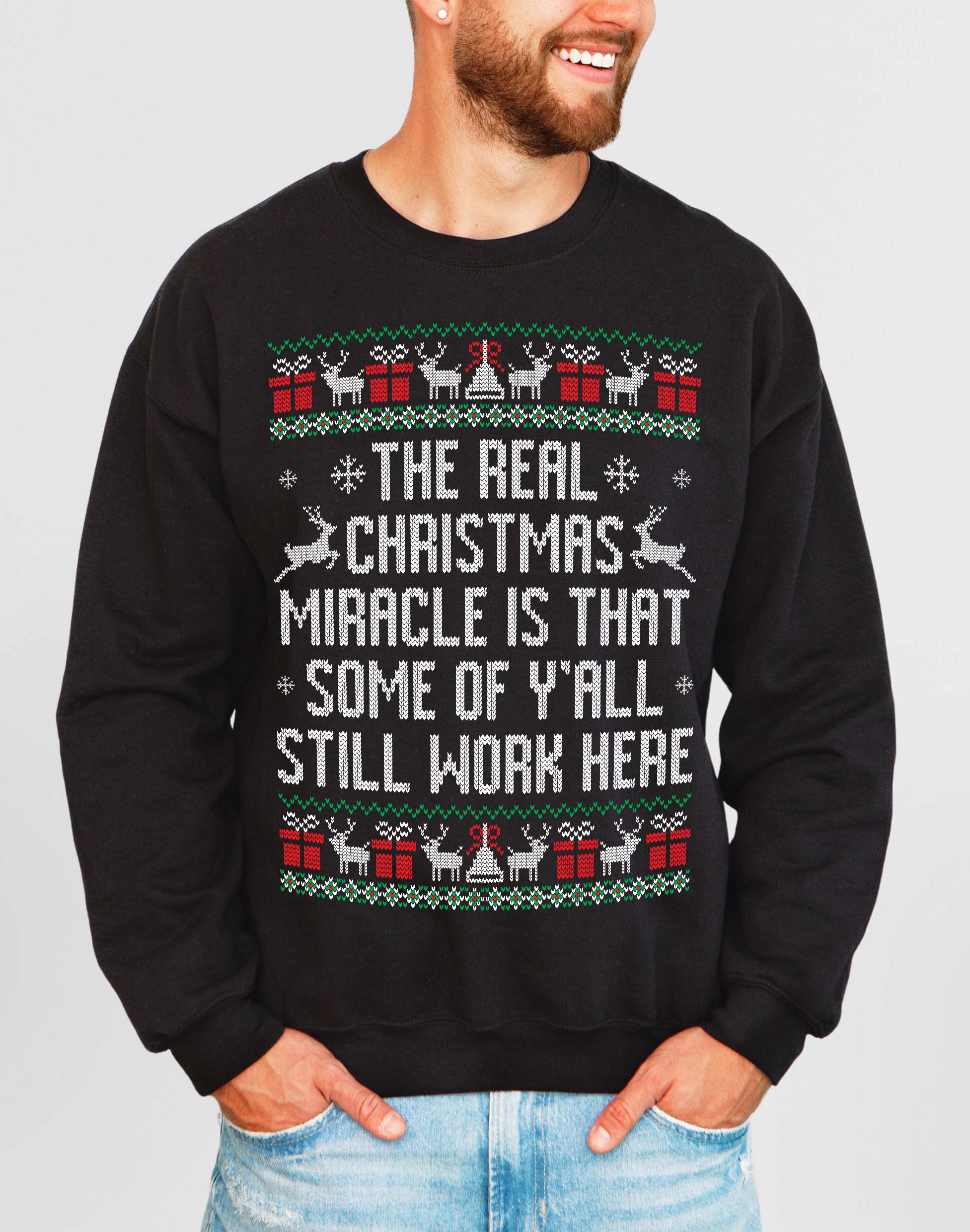 The Real Christmas Miracle Is That Some of Y’all Still Work Here | Funny Office Ugly Christmas Sweatshirt