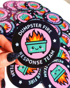 This vinyl sticker features the internet’s favorite mascot of chaos , the dumpster fire , reimagined in kawaii style with rosy cheeks, rainbow sparkles, and the official title: Dumpster Fire Response Team. It’s cute, it’s chaotic, and it’s the badge of honor you didn’t know you needed.