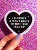 Say it louder for the babes in the back. This glitter vinyl heart sticker reads: “I Support a Man’s Right to Shut the F** Up.”* Perfectly feminist, sarcastic, and sparkly, it’s the ultimate collectible for laptops, journals, and water bottles.
