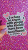 I Refuse To Argues With People Who Should Have Been Swallowed Glitter Holographic Vinyl Sticker