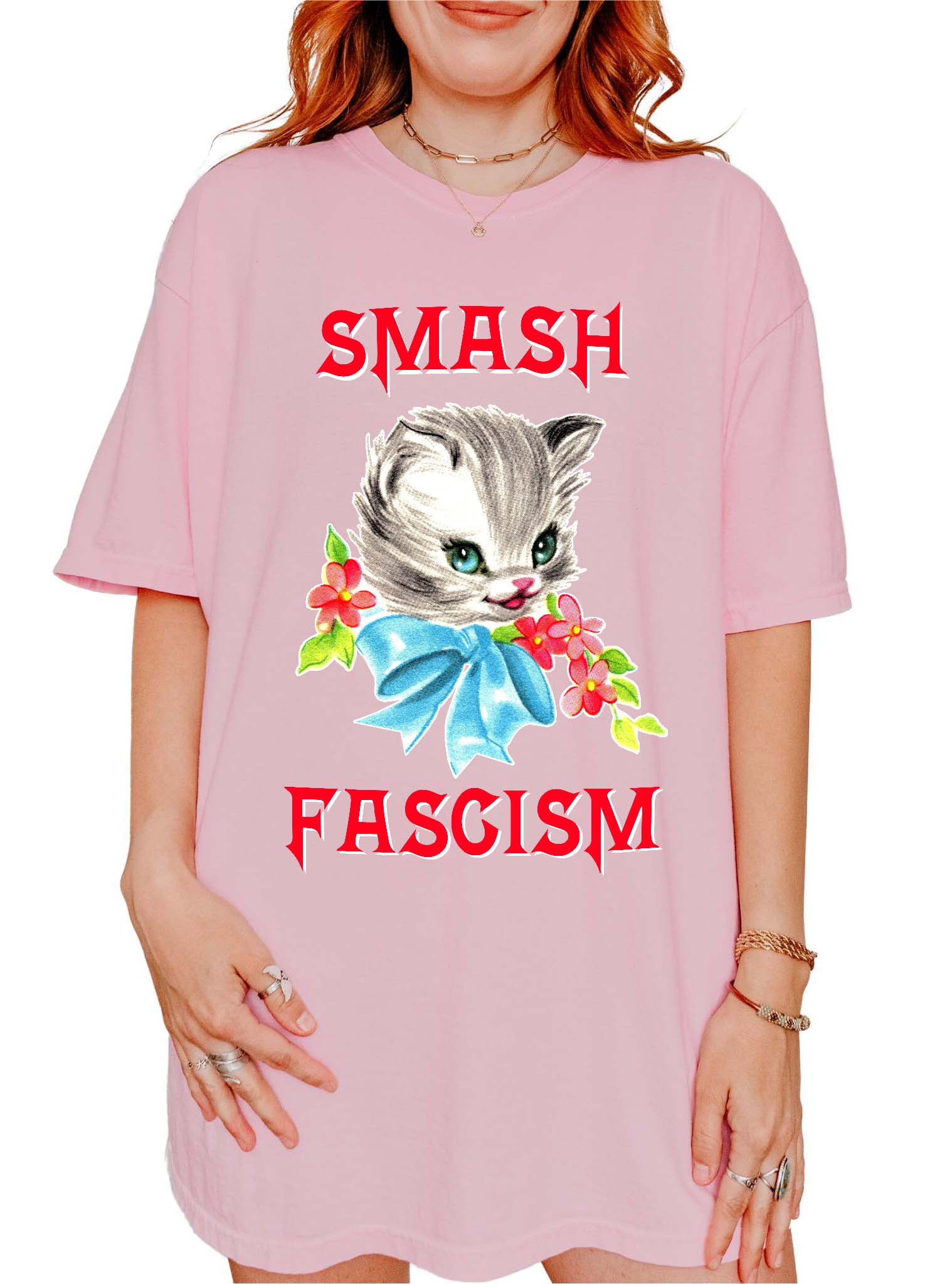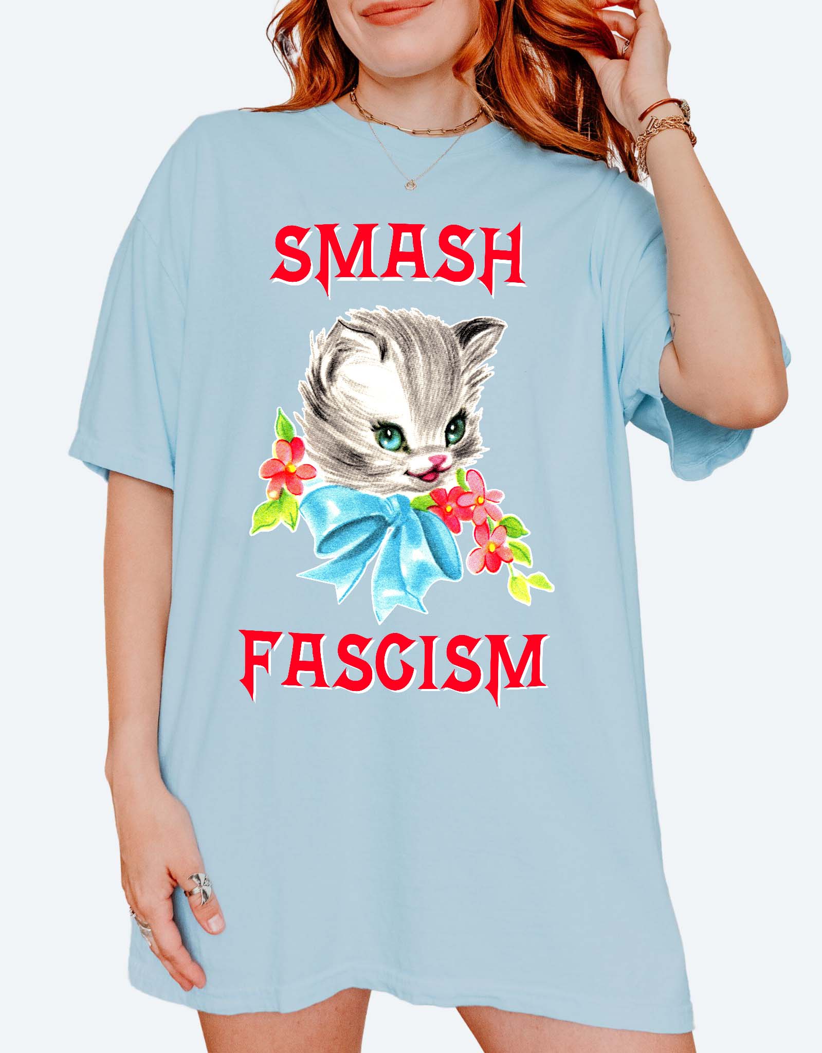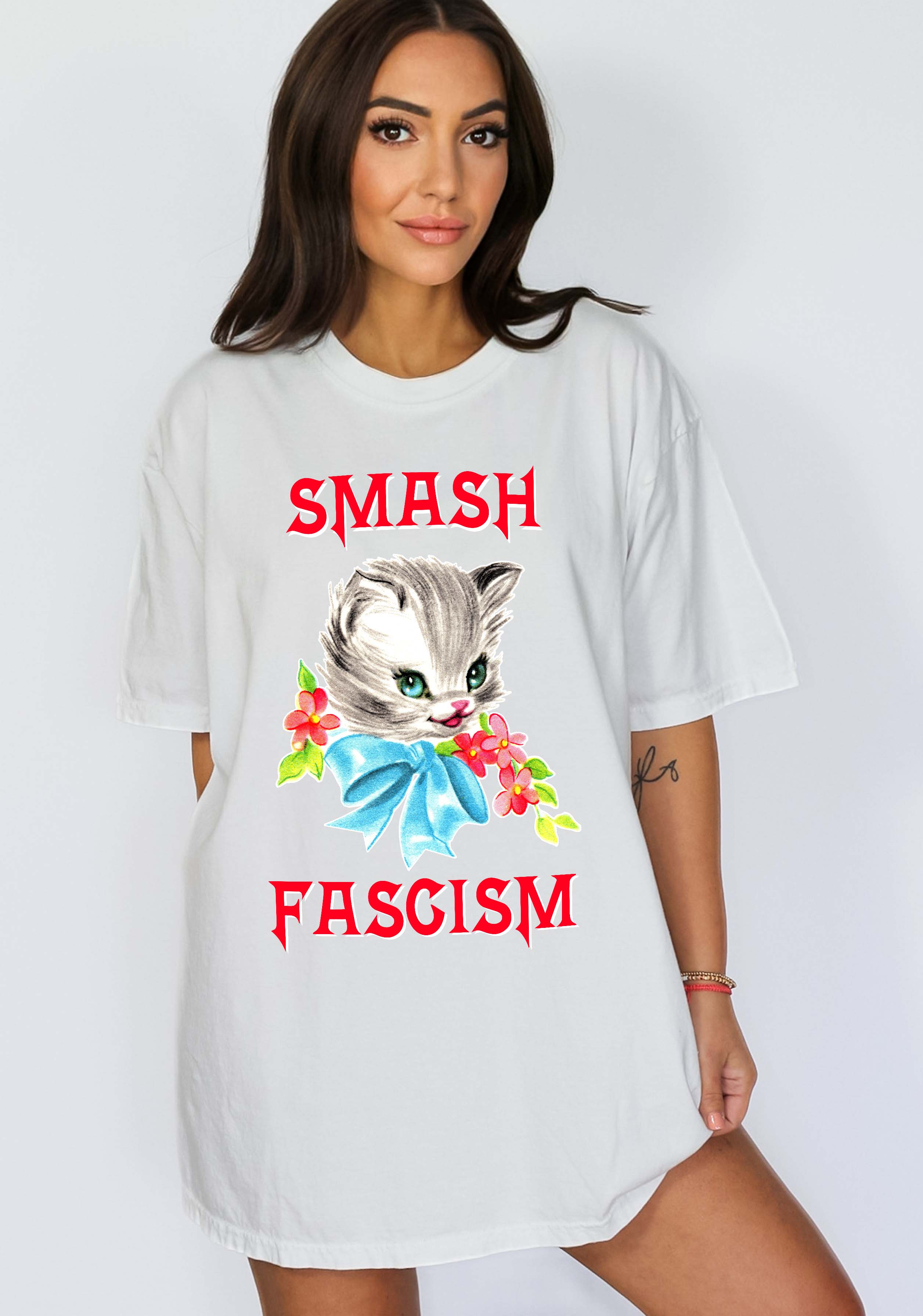 This statement tee is made for those who refuse to sit back while rights are stripped and power is abused. Featuring a bold “Smash Fascism” design in a retro-inspired font, this shirt is soft, loud, and impossible to ignore.