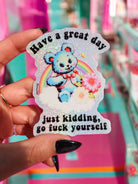 Funny Vinyl Sticker – Have a Great Day Just Kidding – Holographic Waterproof Sarcastic Bear Decal Sticker