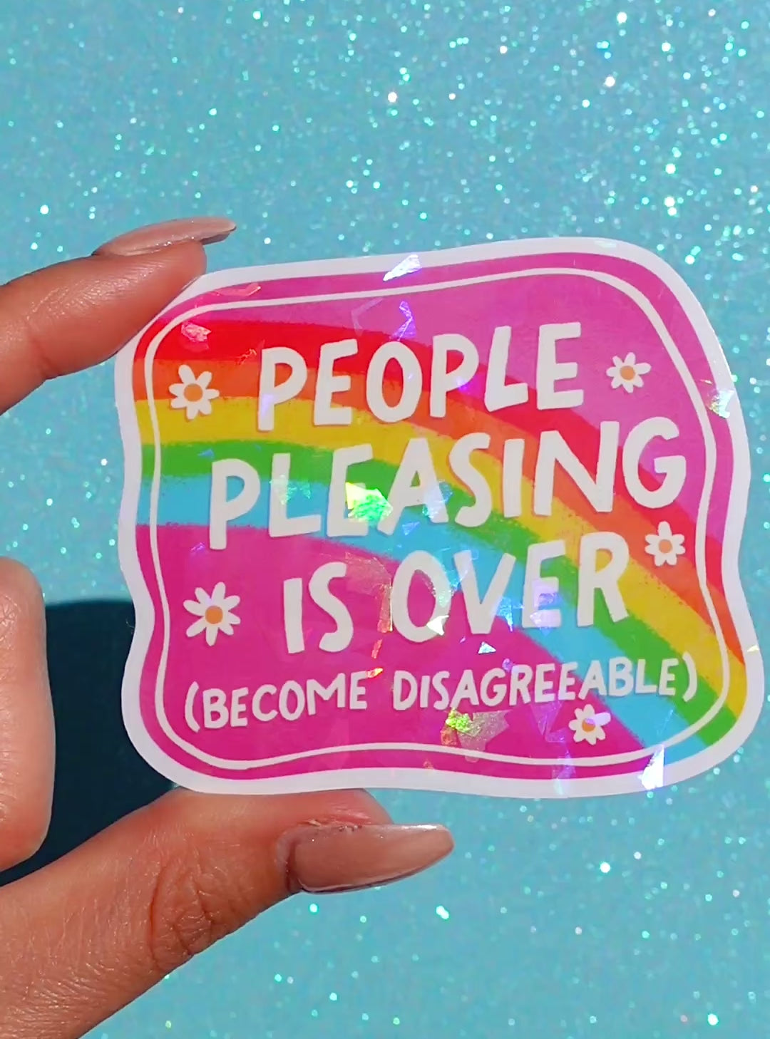 People Pleasing Is Over Sticker – Funny Rainbow Holographic Vinyl Sticker