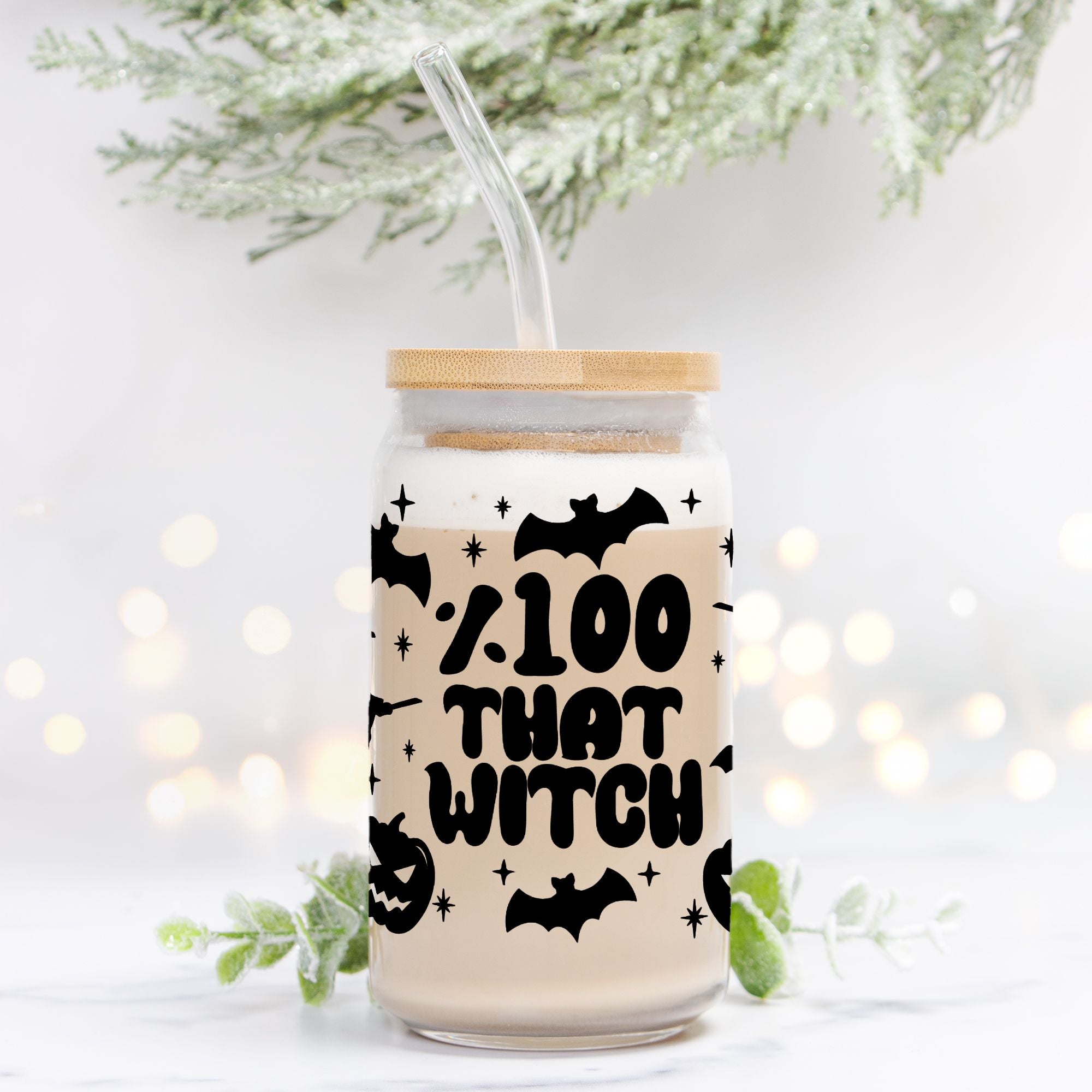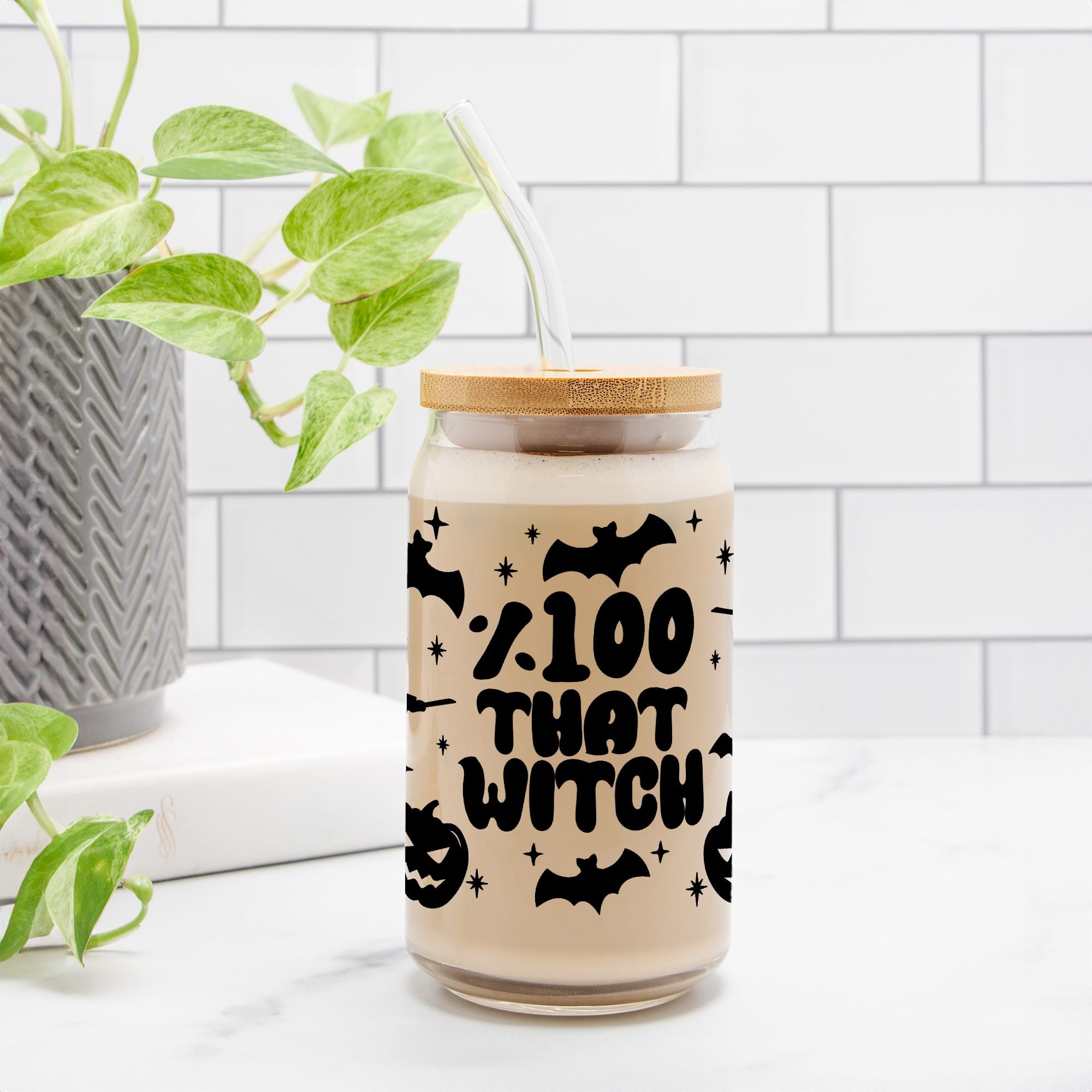 100% That Witch Halloween Glass Can Tumbler