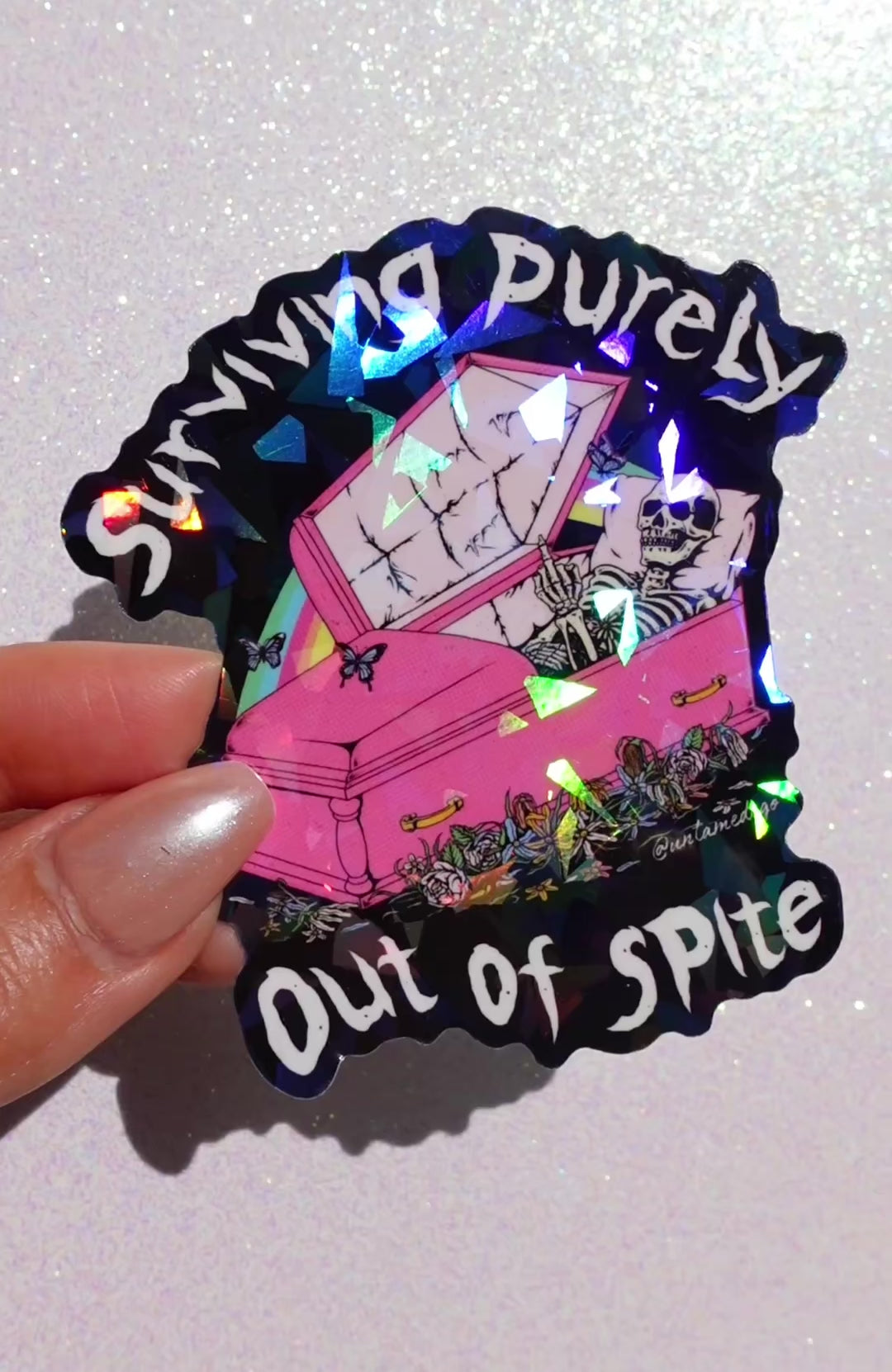 Surviving Purely Out of Spite Sticker – Funny Gothic Glitter Vinyl Sticker