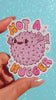 Say it louder for the people in the back. This holographic vinyl sticker features a pink Valentine-style heart with bold red script reading “Don’t Be a F**ing Dick.”* Equal parts cheeky and sparkly, it’s the perfect sticker for sarcastic souls who love mixing sass with retro kitsch.