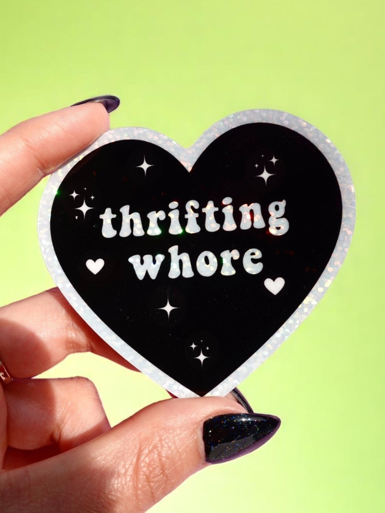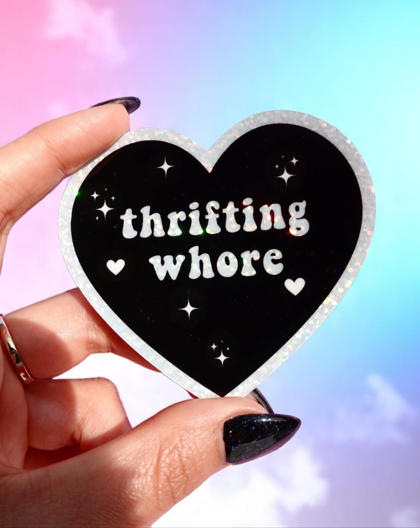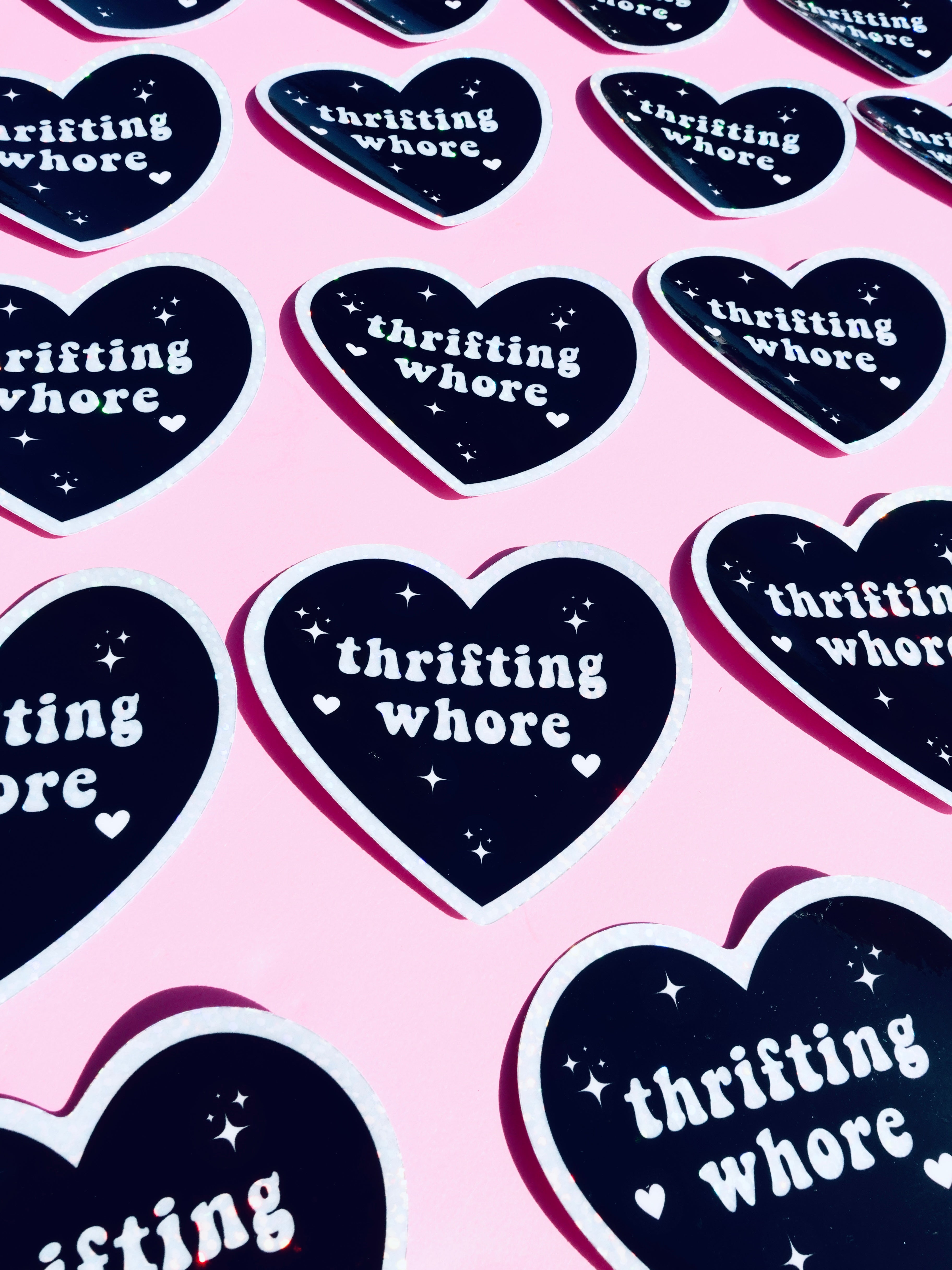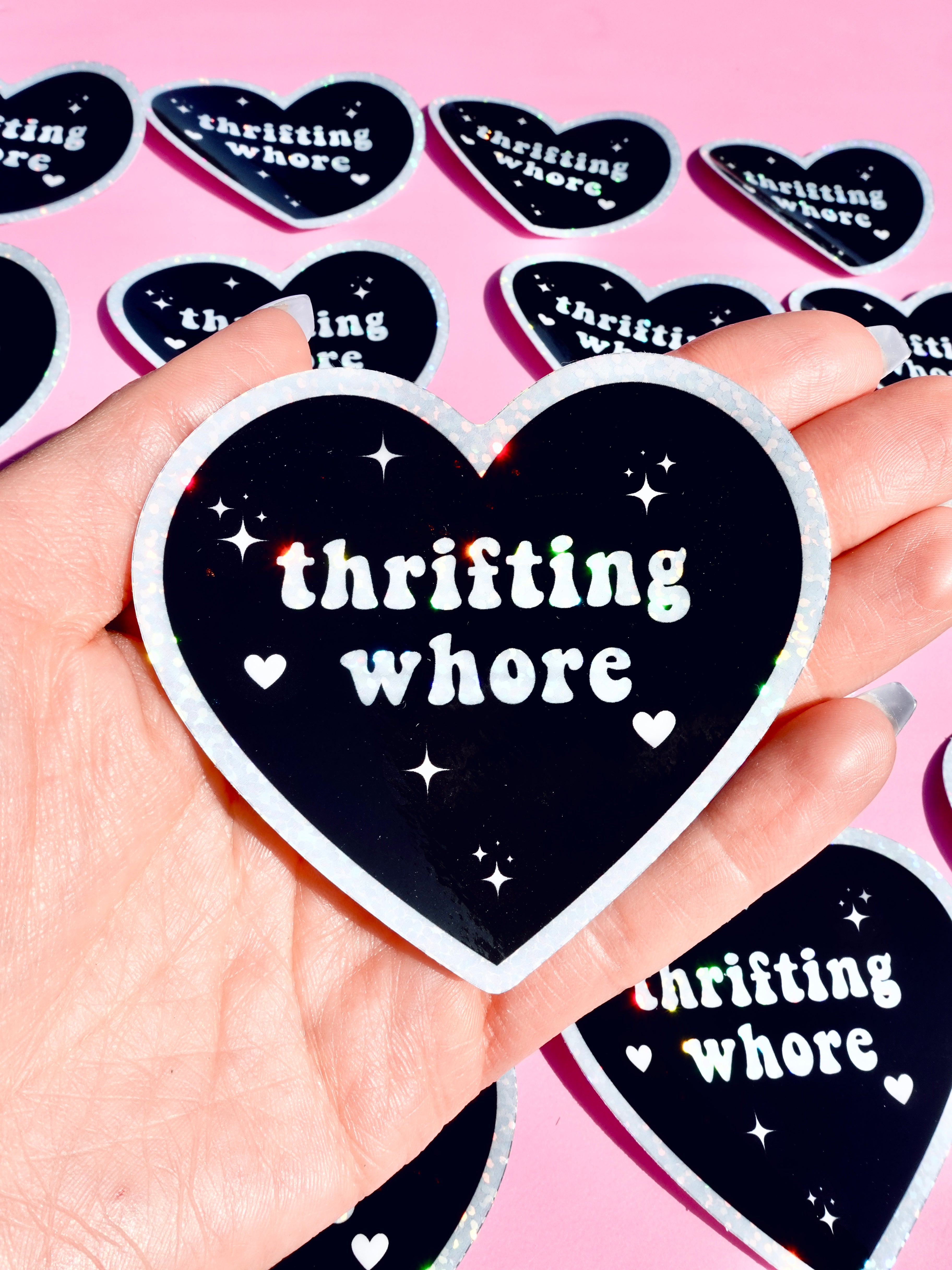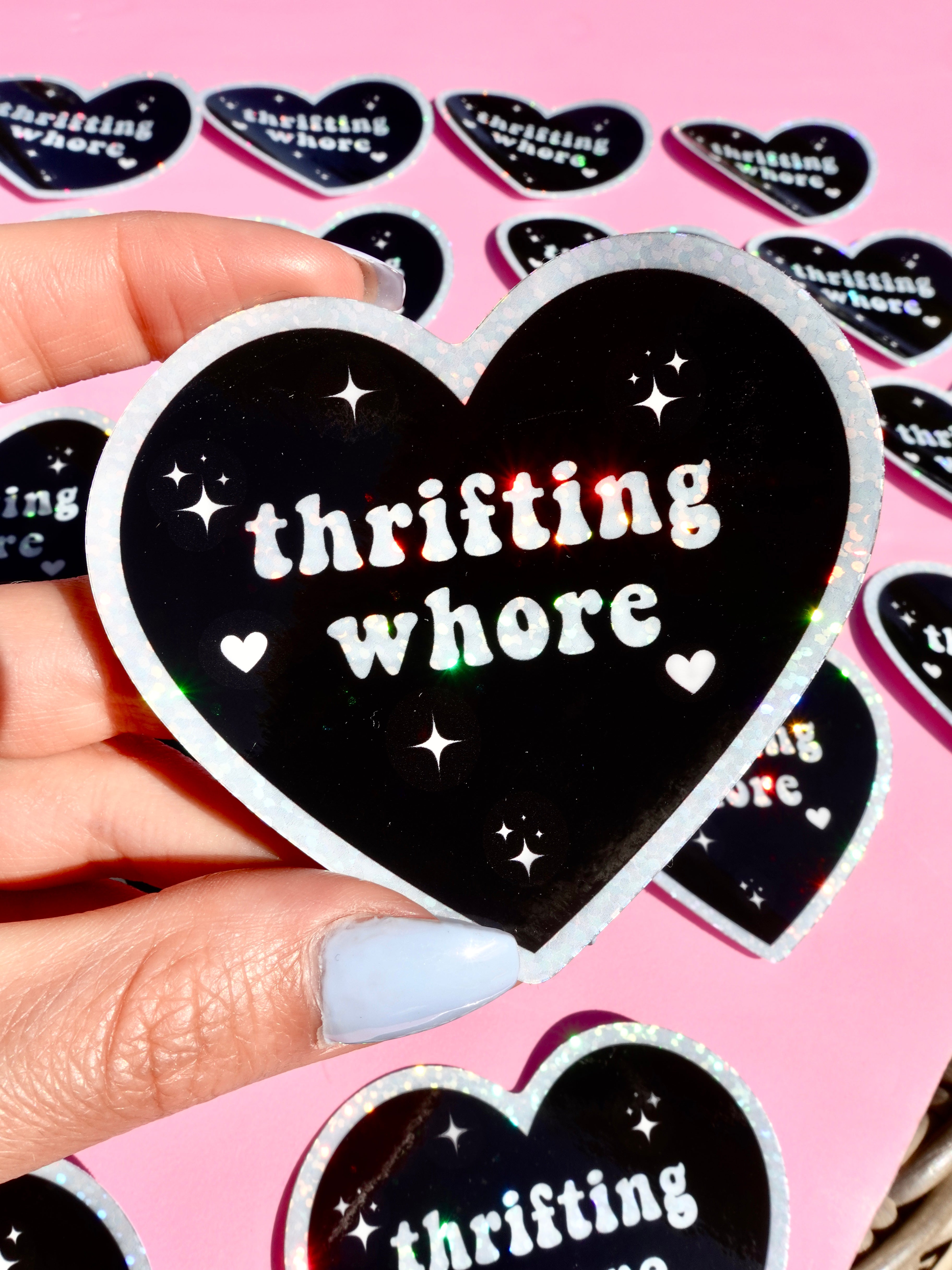 Thrifting Whore Holographic Vinyl Sticker – Funny Sticker for Vintage Addicts & Resellers