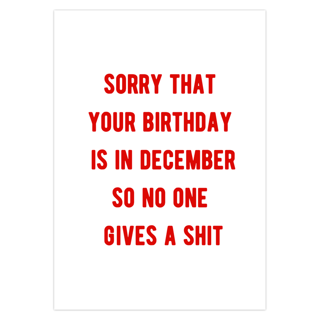 Sorry Your Birthday Is In December | Funny Birthday Card