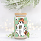 Checkered Ghost Halloween Glass Can 16oz