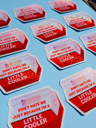 This retro red vinyl sticker is shaped like a classic drink cooler — complete with holographic glitter and perfectly petty energy. Whether you’re actually cool or just emotionally detached, this one's for your water bottle, lunchbox, or cooler full of iced rage.